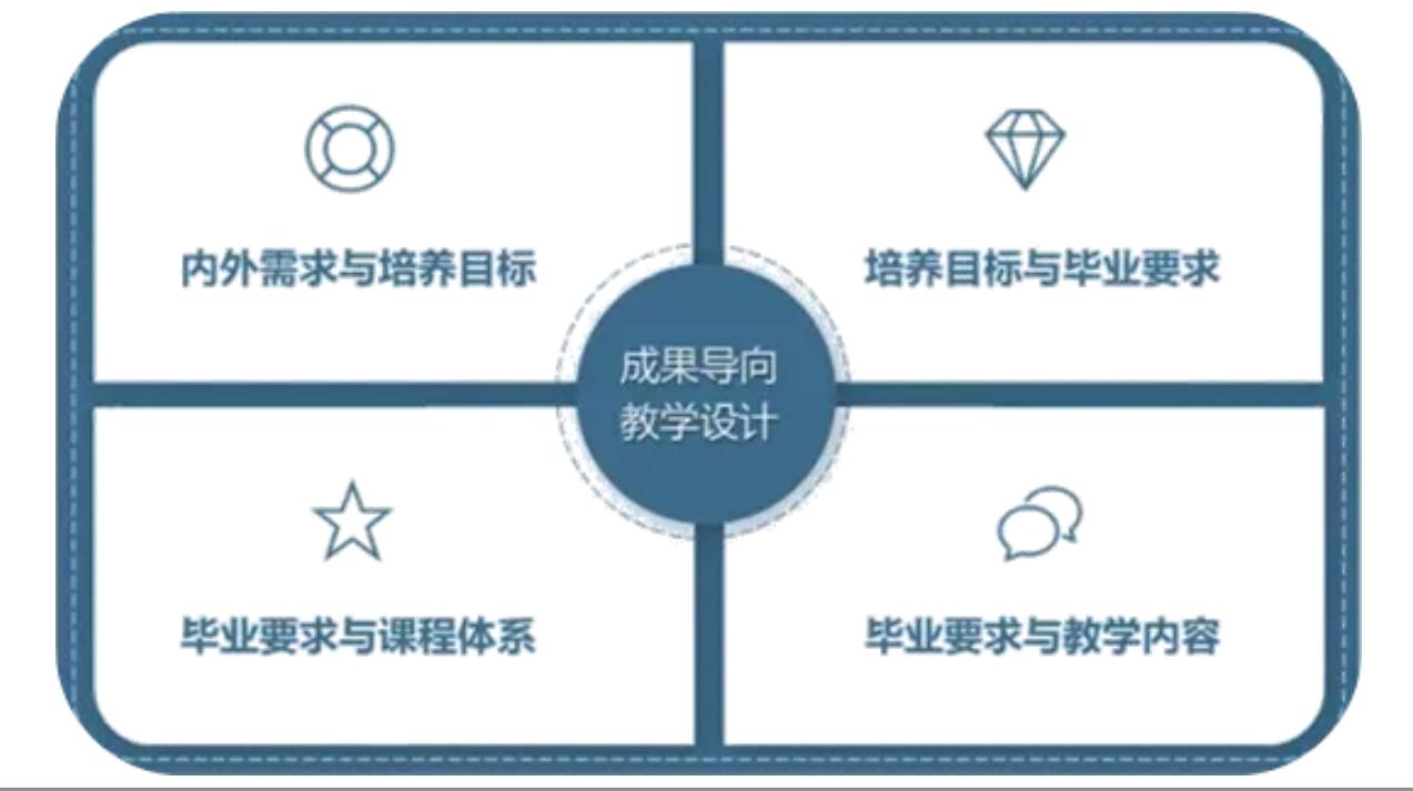 成果导向教学设计是从需求(包括内部需求和外部需求)开始,由需求决定培养目标,由培养目标决定毕业要求,再由毕业要求决定课程体系和教学内容,遵循“反向设计、正面实施”原则开展,使“需求”既是起点又是终点,从而最大程度上保证了教育目标与结果的一致性。