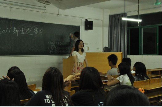 党员们在台上讲解,新生们也全神贯注地听着,丝毫没有走神,给我们展示了新生们的良好精神面貌和风气。