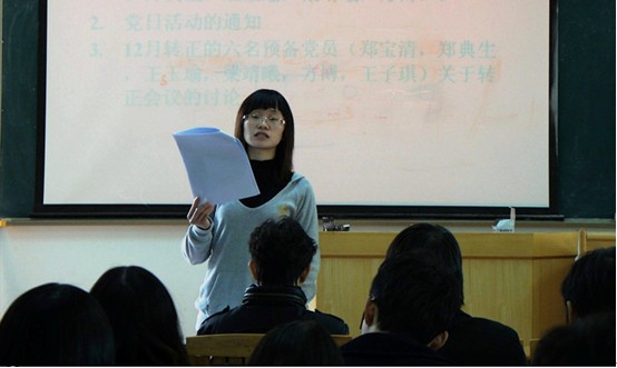 随后会议正式开始,在9名正式党员各自的自我介绍之后,由在场的党员进行不记名票选,最后是在生活、学习和工作上都有突出表现的郑宝清高票当选。紧接其后的预备党员转正会议也在预备党员向大会宣读《转正申请书》,正式党员审查材料,入党介绍人和到会党员对申请转正的预备党员发表意见,以及表决的流程下有序进行,最终预备党员均已全票通过表决。
