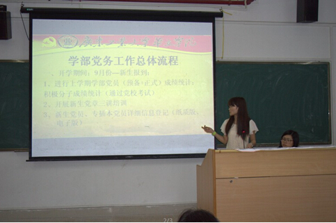 在会议伊始,党总支书记徐香华强调党务工作的重要性,并对培训的党务工作人员提出了要求,要求党务工作人员要认真学习党的理论知识和党务知识,掌握党建工作内容,在工作中以极大的工作热情和甘于奉献的忘我精神为学部的党建工作做出贡献,并且在工作中积累经验,传授经验,互相鼓励、相互配合、以高效率完成党建工作。