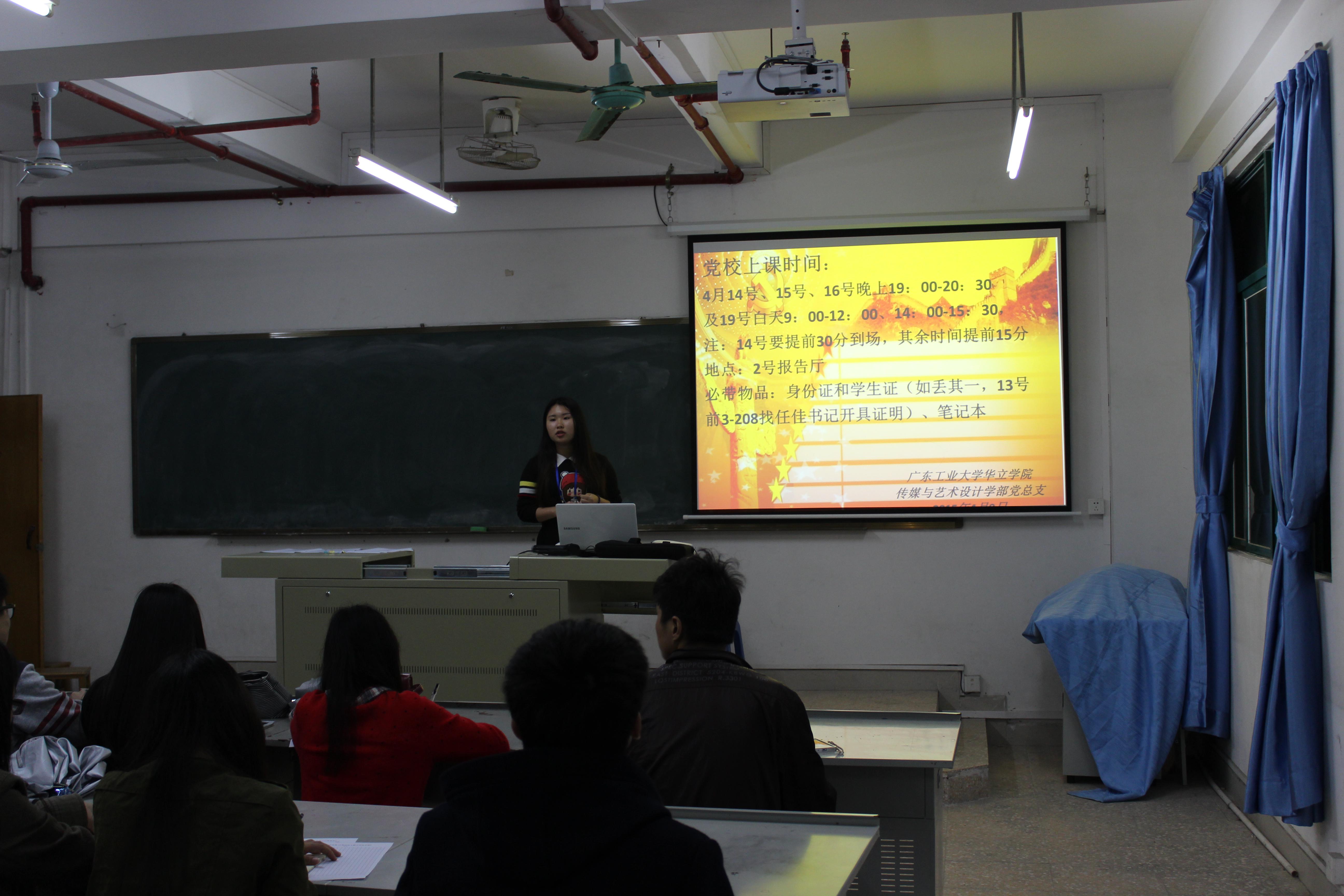最后,在阐述培训细节时,党务工作人员尤其强调党课培训时间,要求同学们遵守党校纪律。并预祝同学们在党校培训中能不断完善自己,努力向党组织靠拢,争取早日加入中国共产党。