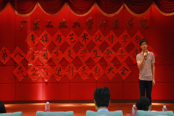 随后,邱志宏老师宣读第八届总支·学生会委员会的预备名单,在热烈的掌声下新一届的委员名单诞生了,当选的新一届委员分别上台,进行了就职演讲。