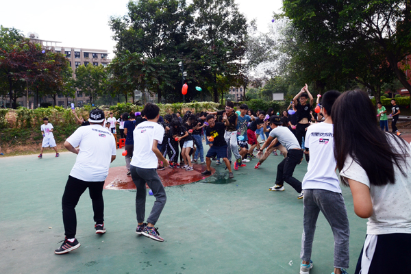 此次得所有参与人员,分成了A、B两队,A组穿白色衣服,B队穿黑色衣服。在体育部部长陈炯宣布比赛开始后,现场气氛热烈非凡,同学们纷纷参与其中。