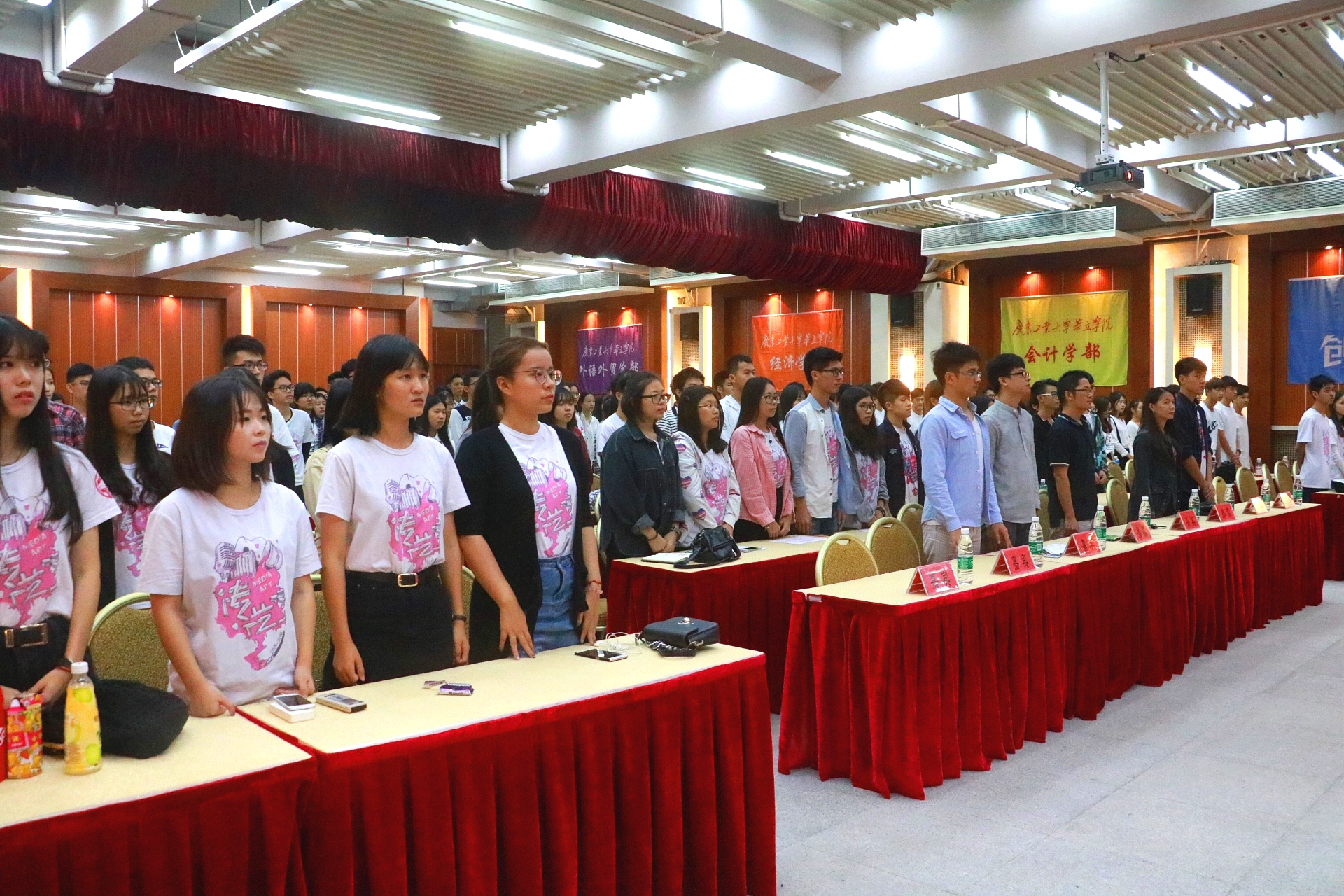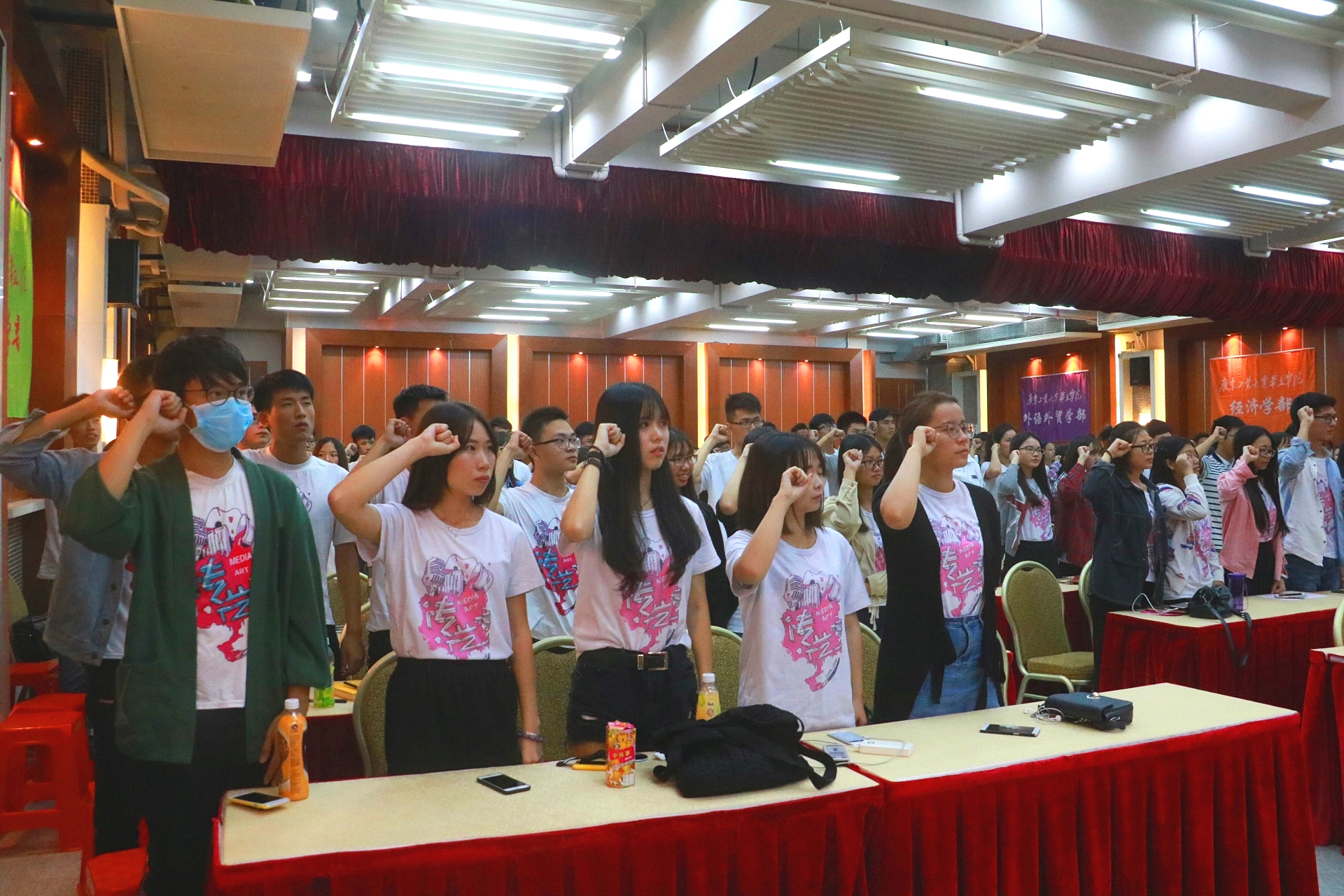 在看完上一届的回顾视频后,新一届的团总支干部在学生会主席陈炯的带领下进行了庄严的就职宣誓,他们均表示会遵守团总支学生会章程,执行团总支学生会决议,履行团总支学生会成员职责,严守团总支学生会纪律,牢记全心全意为同学服务宗旨,勤奋学习,积极工作,服从大局,团结协作,积极进取,开拓创新,为构建和谐校园文化而奋斗!