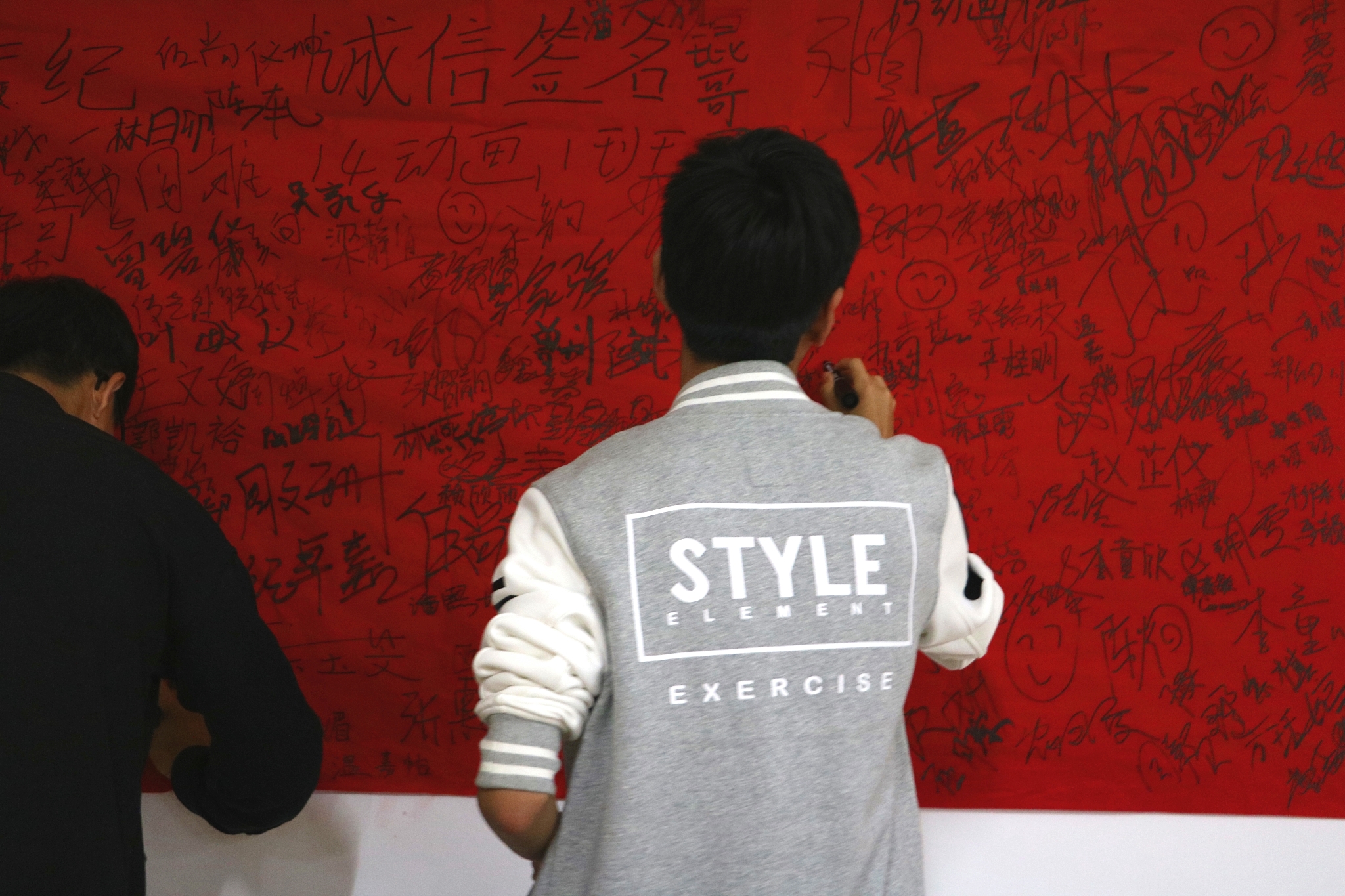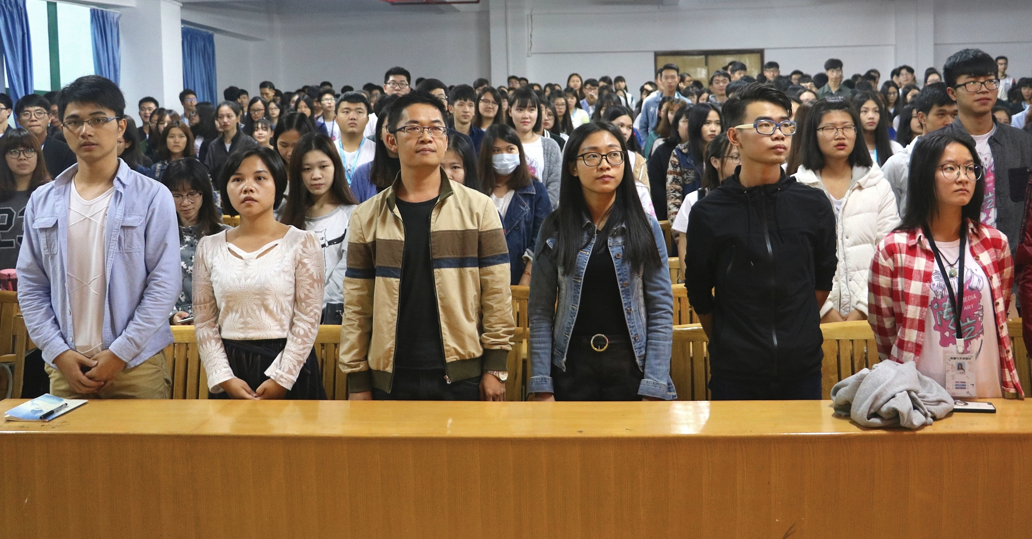 最后,参加大会的全体同学在学生会主席陈炯的带领下进行诚信考试宣誓和签名。