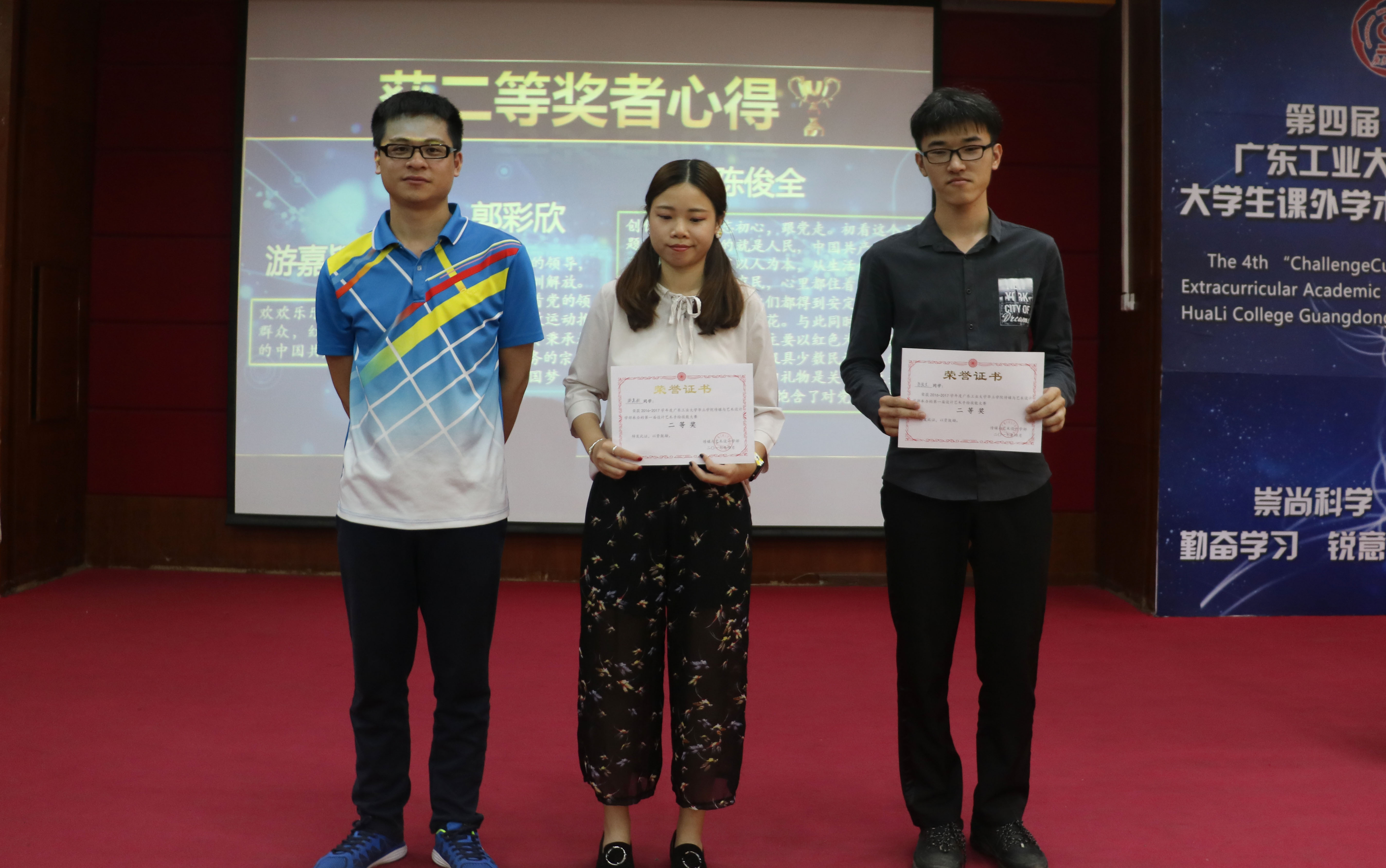 紧接着,学部团总支副书记许灯美为获得优秀奖的选手颁奖,黄叔贤书记为获得三等奖的选手颁奖,邱志宏老师为获得二等奖的选手颁奖,获得一等奖的选手则由刘怡军书记进行颁奖。