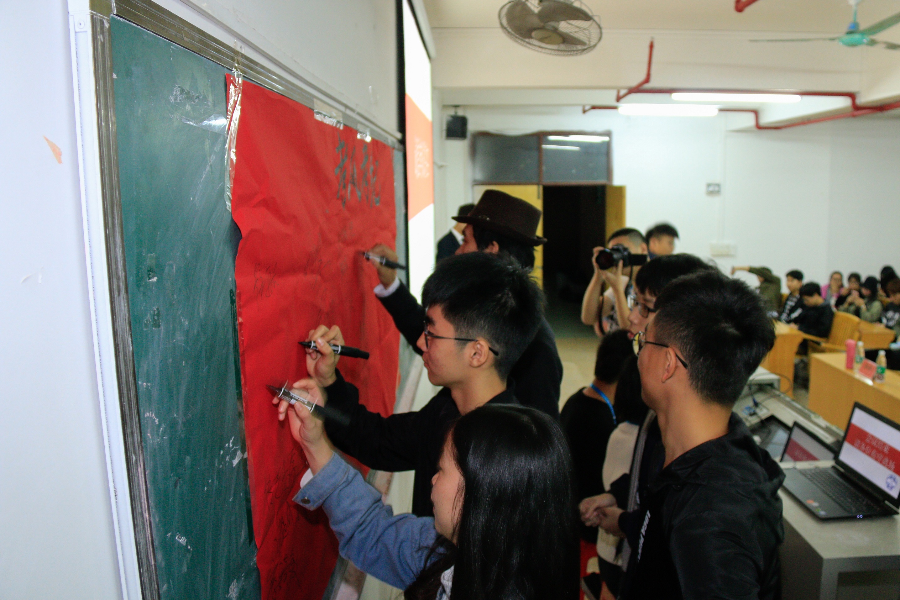 最后,参加大会的全体同学在主持人的带领下进行诚信考试宣誓和签名。