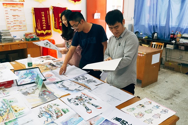 4月2日,黄叔贤老师,朱灿华老师,林淑萍老师在1号楼211课室对参加此次比赛的作品进行评比。获得一等奖的作品有:潘海波《异域》、谭云《鱼梦》、叶文滔《战魂K一敢达》。获得优秀奖的作品有:陈保安 《创“新”世界》、陈敬渊 《设计新世代》、区志炜 《商品》。