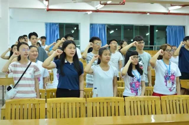 本次三下乡动员大会暨培训大会正式展开。在各师兄师姐致词过后,播放了历届传艺志愿团三下乡活动的视频,向大家展示了传艺志愿团的精神风貌。宣誓仪式时,全体志愿者们起立,举起右拳,作出了誓言。