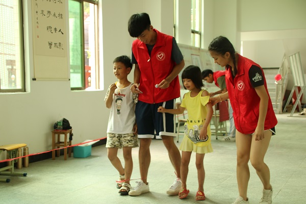 第二天是运动会的主场,志愿者们带着小朋友们一起参加游戏,现场气氛非常融洽。