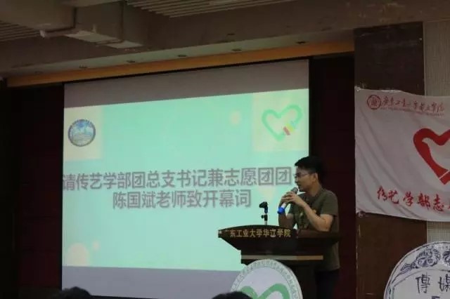 此次大会邀请了传媒与艺术设计学部团总支书记兼志愿团团长陈国斌老师、学生会主席肖泳扬、学生会副主席陈东成、各学部志愿服务队代表和各班级代表、全体三下乡志愿者。本次表彰大会由陈老师为三下乡表彰大会致开幕词。
