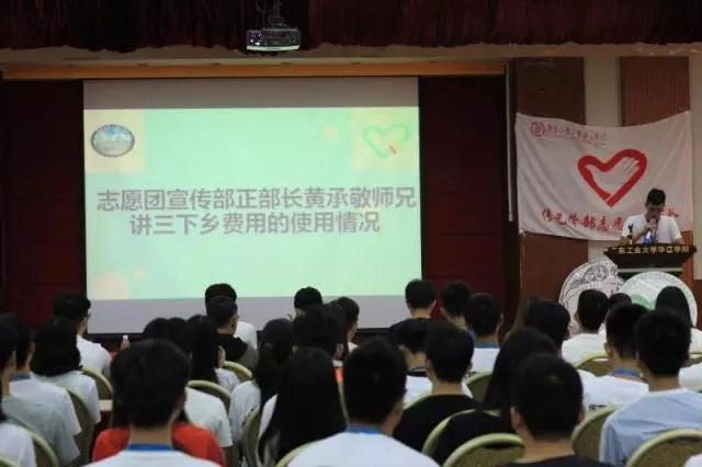 接着,志愿团宣传部部长黄承敬汇报三下乡费用的使用情况。汇报完毕后,播放了三下乡的记录视频和照片,使在场的老师和志愿者回想起那三天两夜的美好有意义的时光。接下来由各个小组派志愿者代表上台讲话,讲述关于在三下乡过程中的心情和收获。紧接着开始对三下乡优秀队伍,优秀组织者,积极分子颁奖。