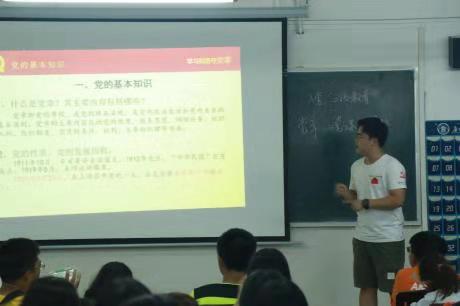 为响应党带团的号召,党建办工作人员对授课人员的安排采取了以党带团的形式对新生开展党章,目的是让党员能带着团员干部共同进步。在此授课期间,授课人员能活跃课堂气氛,而新生们也能认真听讲,积极做好笔记,在授课人员向新生提问时,新生们也能踊跃举手参与互动,回答授课人员所提问的问题,并有自己的一方见解。