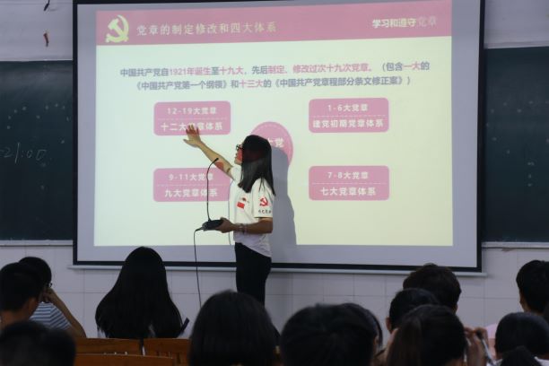 继党章第一讲、二讲顺利开讲后,2018年9月19日19:00,党务工作者再次动员党员们在1号教学楼6楼开展党章第三讲。