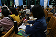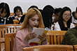 紧接着,党员们便开始带领学生们在党课书上划重点,学生们翻开党课书籍并打起十二分精神认真跟着党员们的步骤有序的画下重点,党员们也预祝学生们顺利考过党课,拿到党课结业证书。