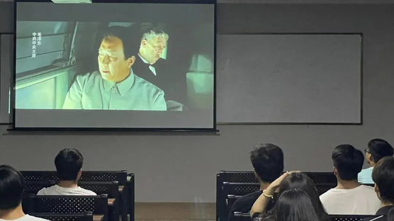 党课开始,主持人宣读党课纪律,要求学员要严格遵守纪律并上交手机。随后主持人播放视频《建国大业》。该视频主要讲述了从1945年抗日战争结束到1949年建国前夕过程中发生的一系列事情,让学员们更深入地了解到中国共产党的党史。