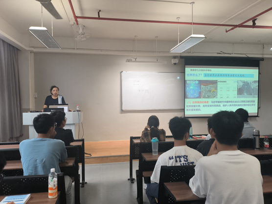 李静院长以“坚持和发展中国特色社会主义”这一重要思想为立足点,从时代和国际形势的角度出发,向台下的莘莘学子介绍了“十个明确”“十四个坚持”等重要理论,让他们深刻认识到中国特色社会主义的历史必然性、科学真理性和现实优越性,立志做实现共产主义远大理想和中国特色社会主义共同理想的奋斗者和接班人,让听党话、跟党走成为青年学生的自觉追求。
