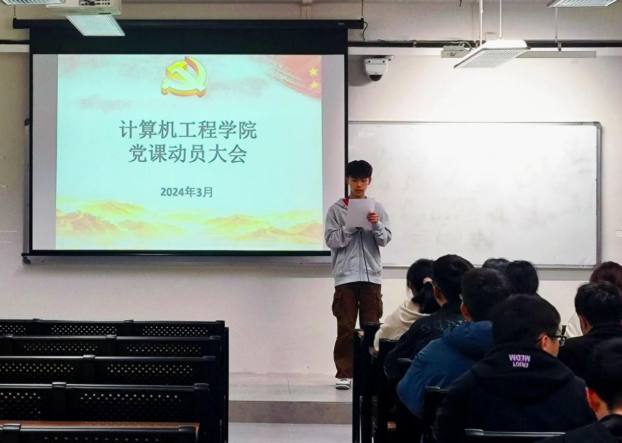 为进一步加强入党申请人对党的基本理论、方针及政策的学习,引导大学生树立共产主义远大理想,积极向党组织靠拢,学校党委开展以党的基本知识和理想信念教育为主要内容的党课学习活动。2024年3月7日,计算机工程学院于四号楼403教室召开第六期党课动员大会,参与本次会议的人员有计算机工程学院学生党支部书记黄智润老师、在校党员以及党务秘书。