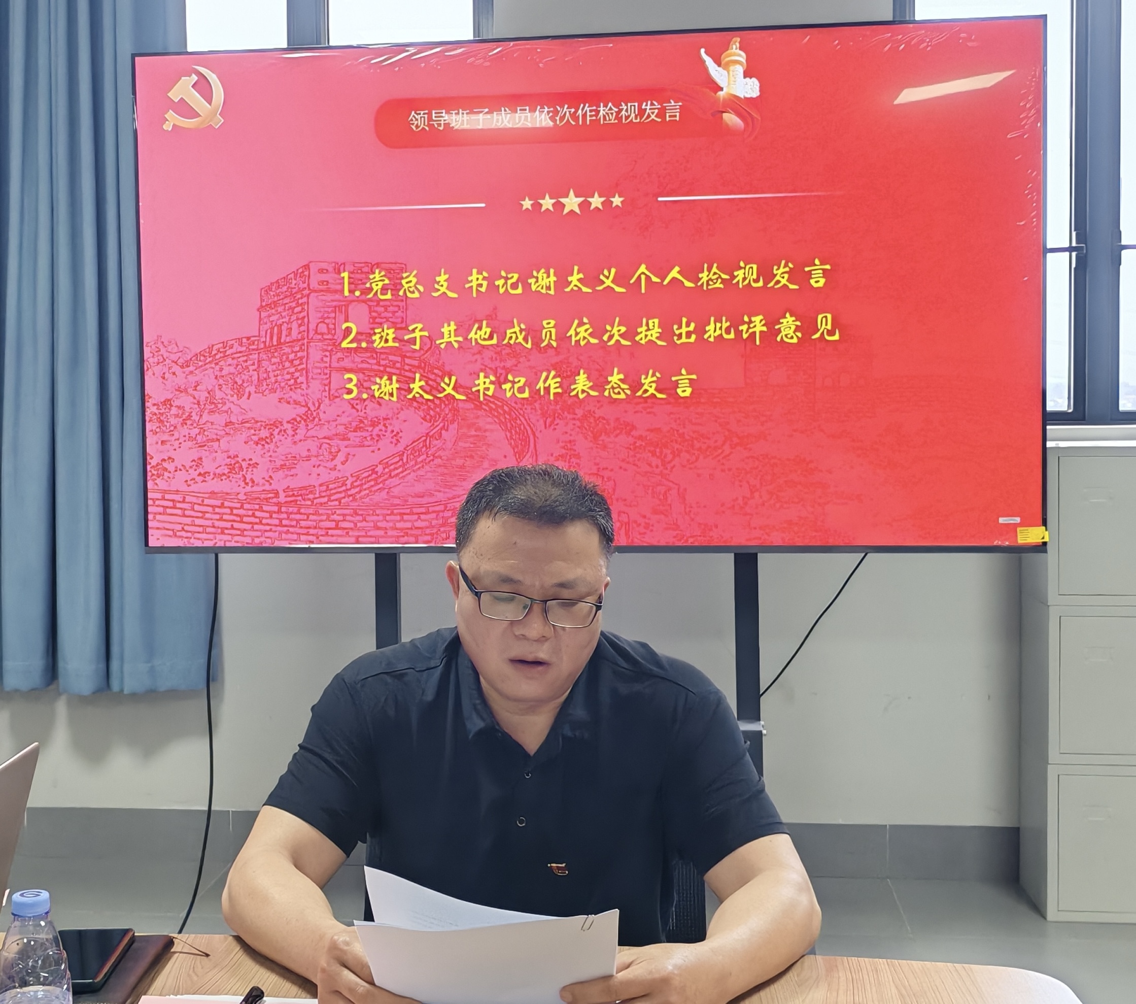 会议第二项议程,党总支书记谢太义代表学院领导班子作检视发言。他从理论学习、政治素质、能力本领、担当作为、工作作风、廉洁自律等方面深入查摆问题,深刻剖析了问题产生的根源,并提出了切实可行的整改措施。发言直面问题、坦诚务实,体现了班子自我革新的决心。