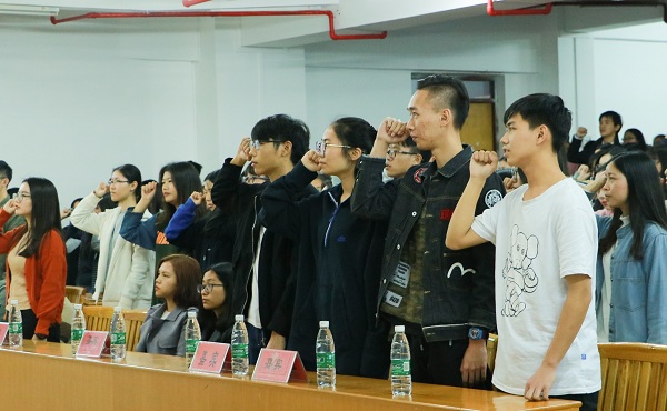 最后,参加大会的全体同学在主持人的带领下进行诚信考试宣誓和签名。