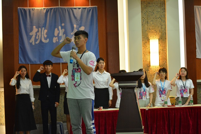 随后,全体同学在秘书长卢知航的带领下进行诚信考试的宣誓和签名。