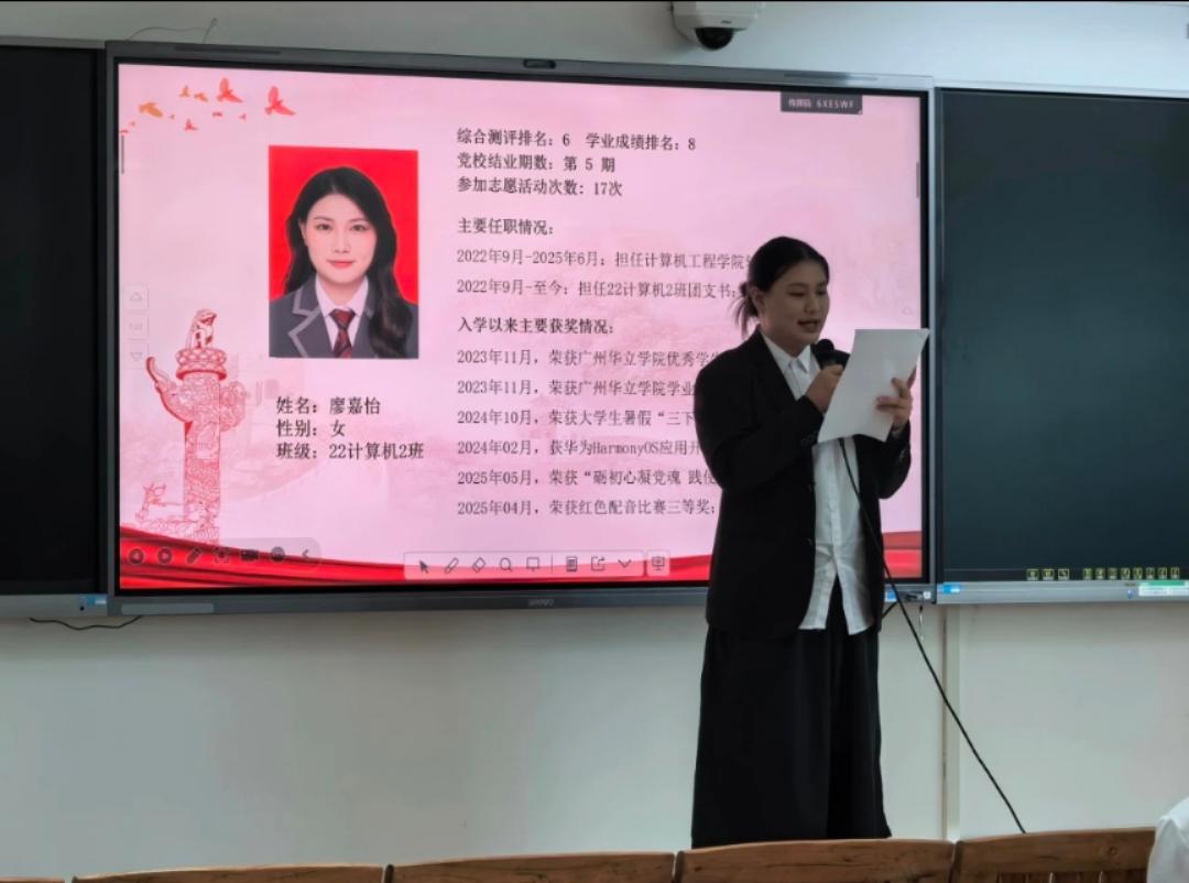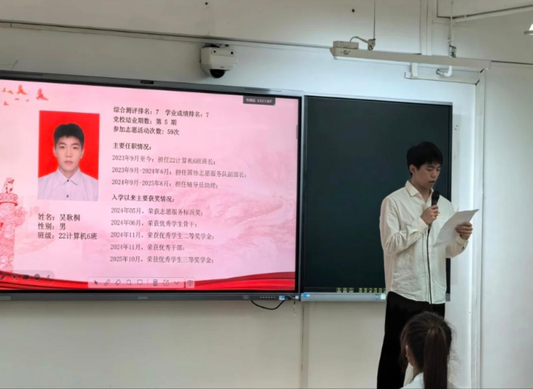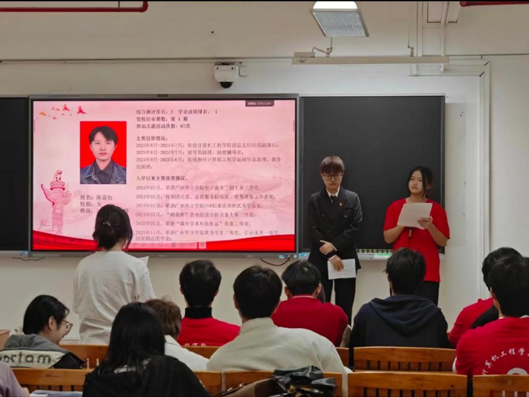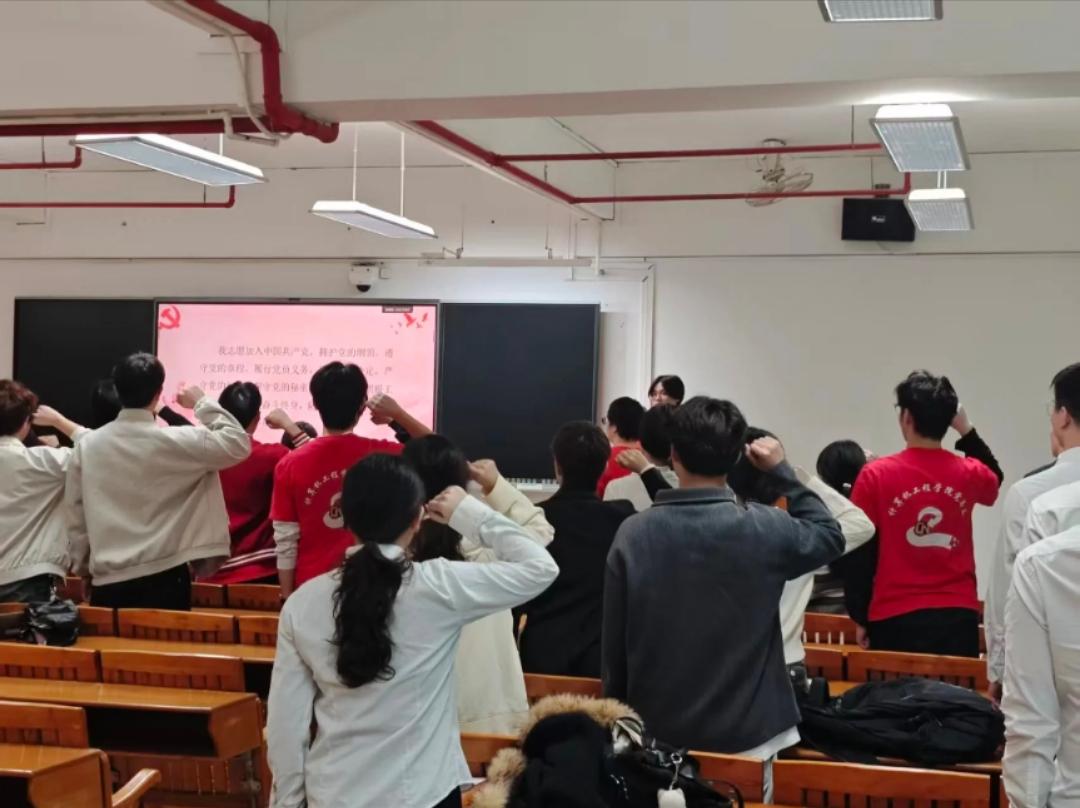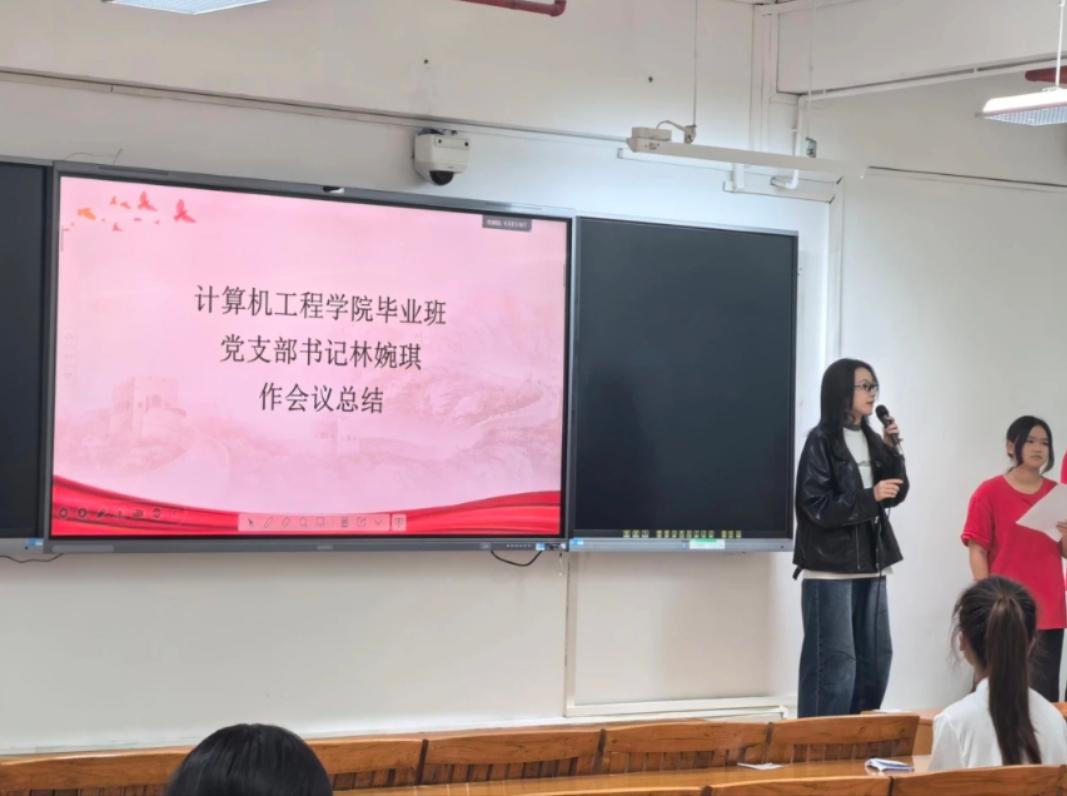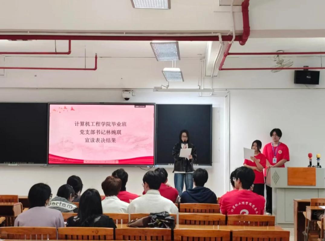 2025年12月,计算机工程学院毕业班党支部在5号教学楼304教室召开预备党员转正大会,研究讨论孙雨璐等10名预备党员转正事宜。参与会议的人员有计算机工程学院毕业班党支部书记林婉琪、学生党员以及党务秘书。