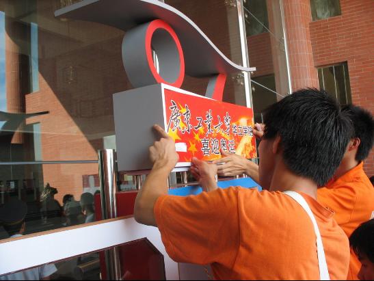 2008年7月3日星期四下午4点30分,由我学院学生自主研发制作的奥运倒计时器在图书馆门前进行了揭幕仪式。朱有兰处长主持了这次的揭幕仪式,邓则名院长,陈颖处长,电子协会指导老师刘大龙和电子协会全体骨干出席了这次揭幕仪式,并为倒计时器进行了揭幕。这个倒计时器外观大方,顶部是以眼睛为主题的标志,代表我院学生展望未来,创新世界的意念,中间部分用数码管显示了距离北京奥运会开幕的时间,下部是滚动式广告,这倒计时器凝聚了电子协会的骨干们和指导老师的汗水和智慧,充分体现我院学生自主创新的科技创新精神。