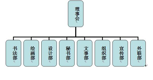 协会组织机构:理事会 书法部 绘画部 设计部 秘书部 文事部 组织部 宣传部 外联部