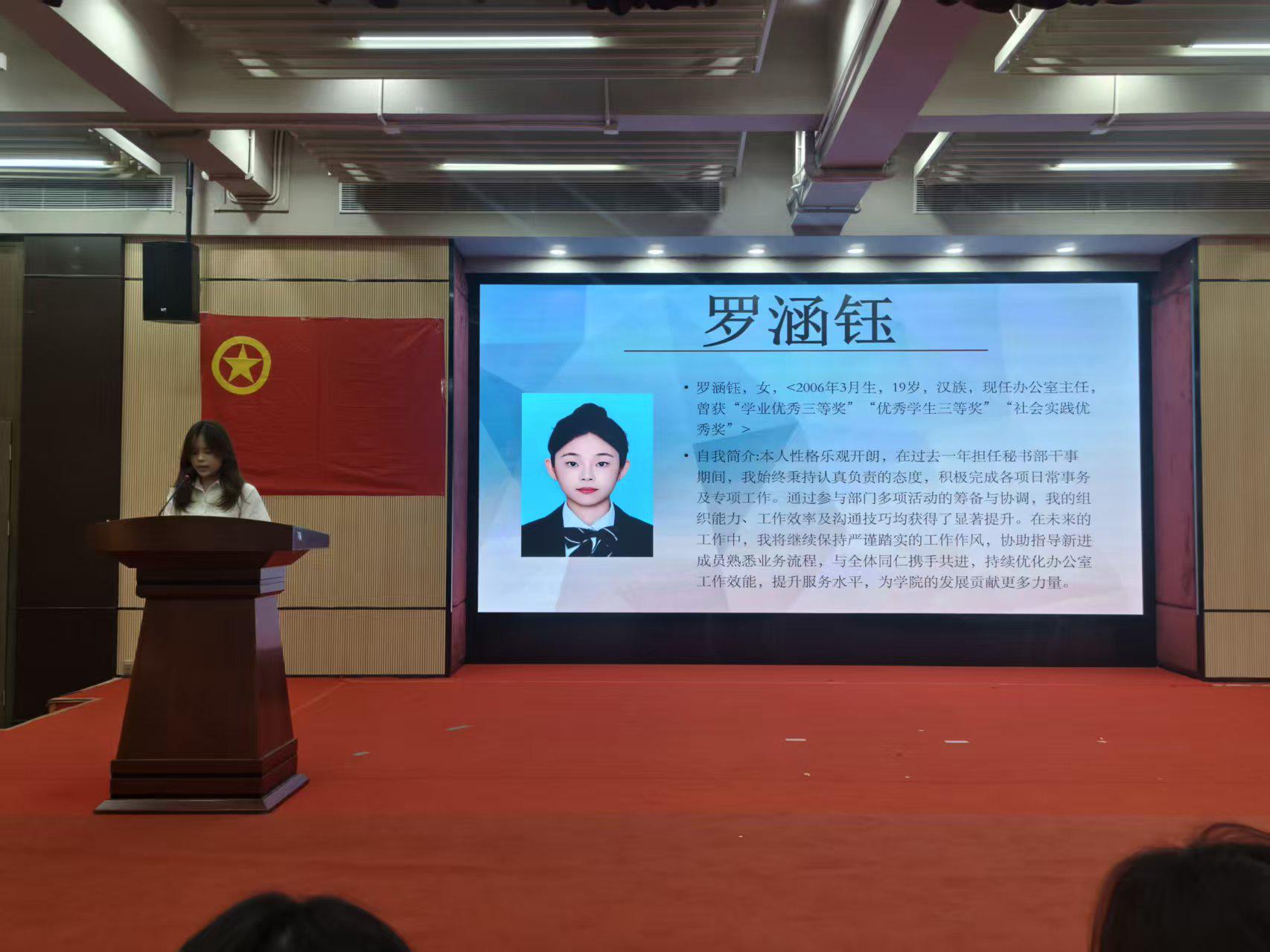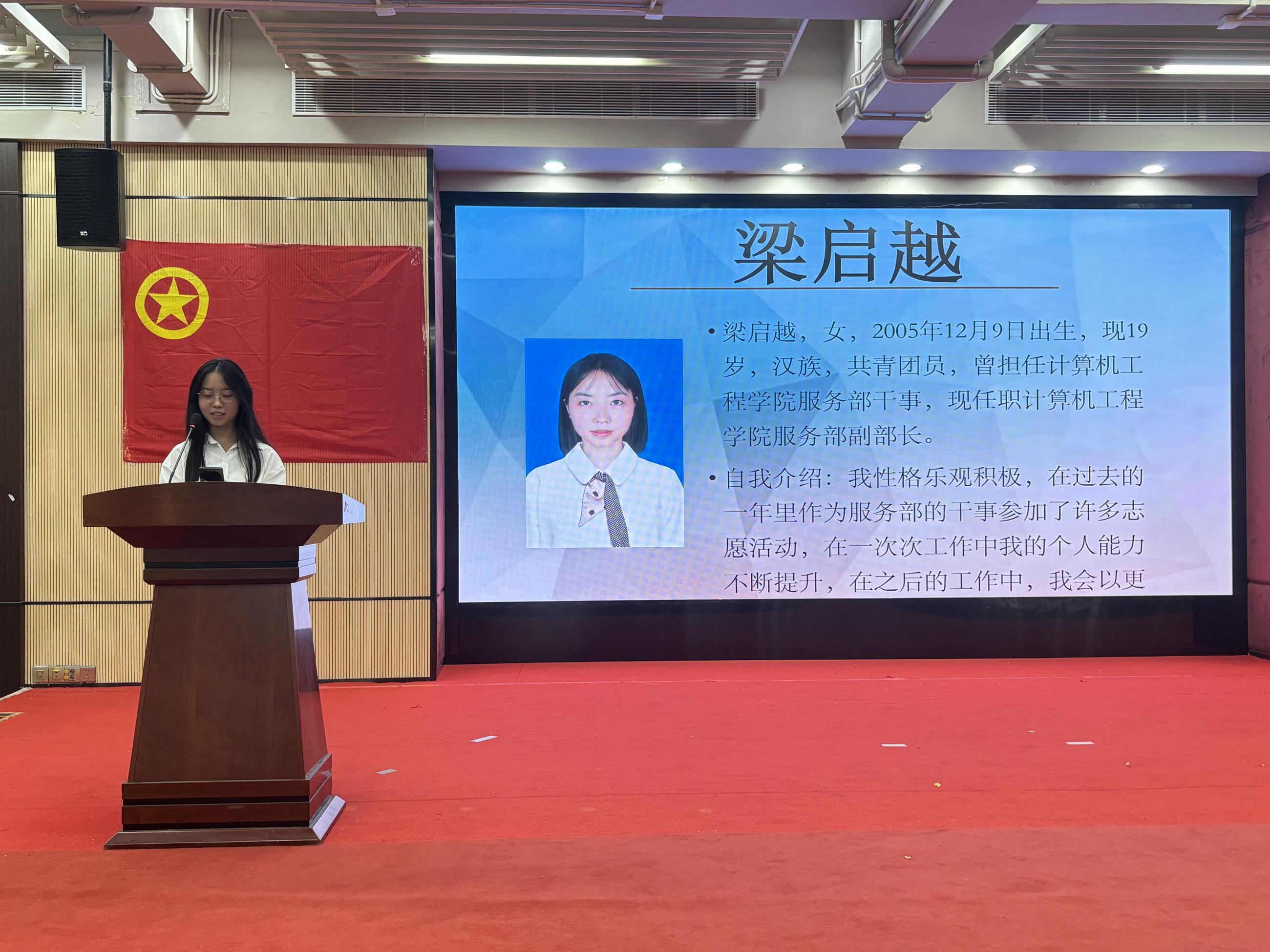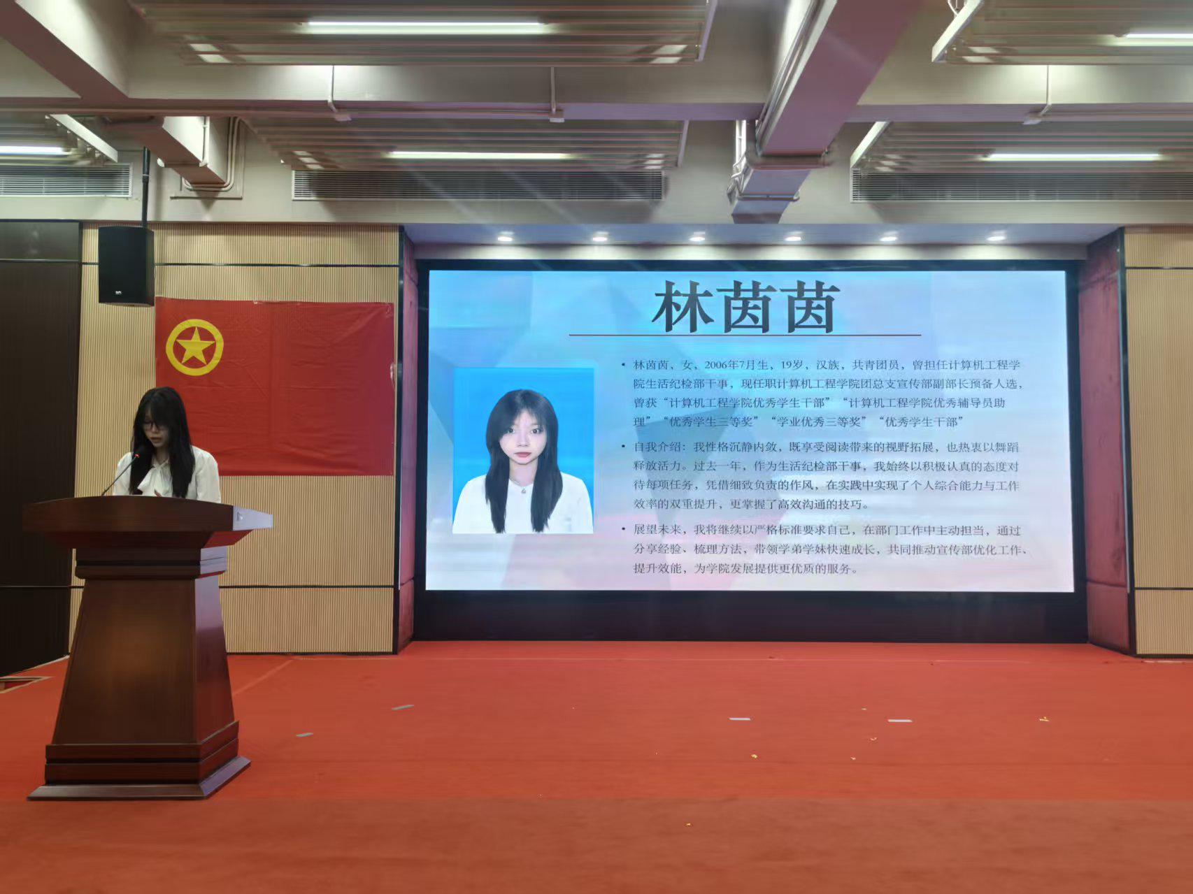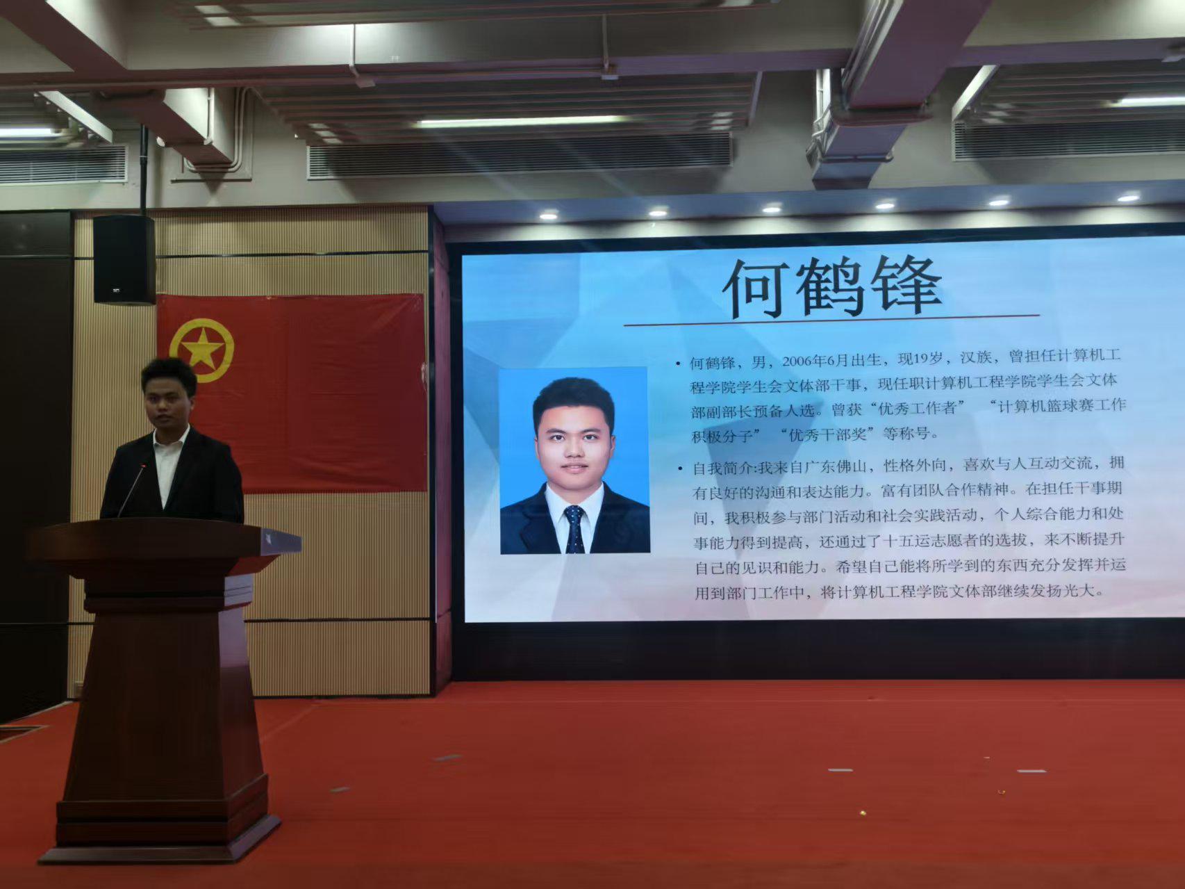 计算机工程学院党总支副书记李海清致开幕词。她充分肯定学院团学组织在过去一年里所取得的优异成绩,并且高度赞扬学生干部兢兢业业,踏实认真的工作态度。除此之外,她对全体成员提出三点要求:一,学生骨干思想要过硬,素质要过硬;二,学生会干部成员要在工作中善于思考,会工作、懂落实;三,学生代表要学会平衡学习和工作。