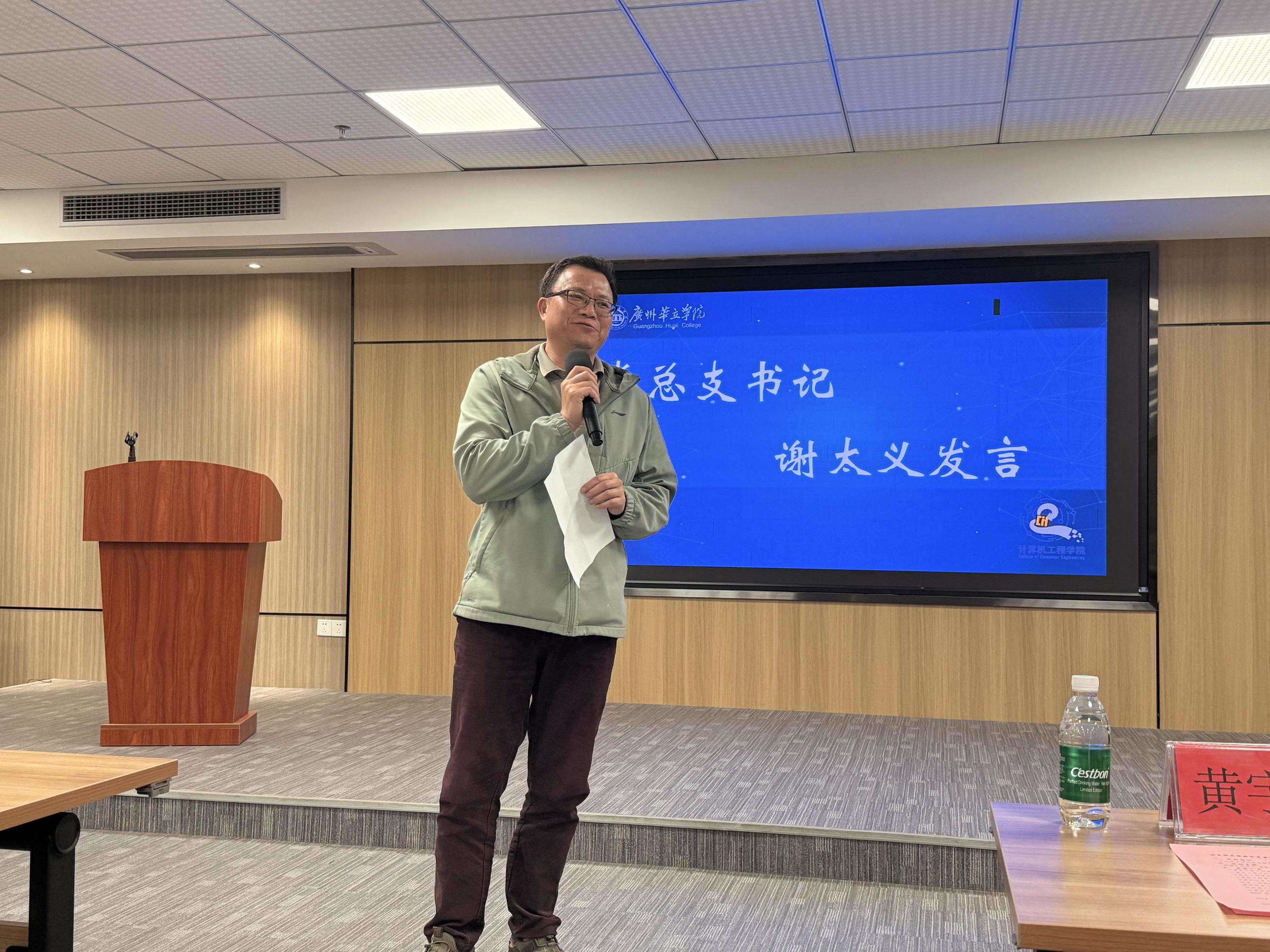 首先,党总支书记谢太义热烈欢迎百忙之中返校的优秀校友们!同时,他提及在信息技术飞速发展、时代变革浪潮涌动的当下,这些校友们的校园求学经历、职场深耕之路与创业探索故事,都是最珍贵的财富。