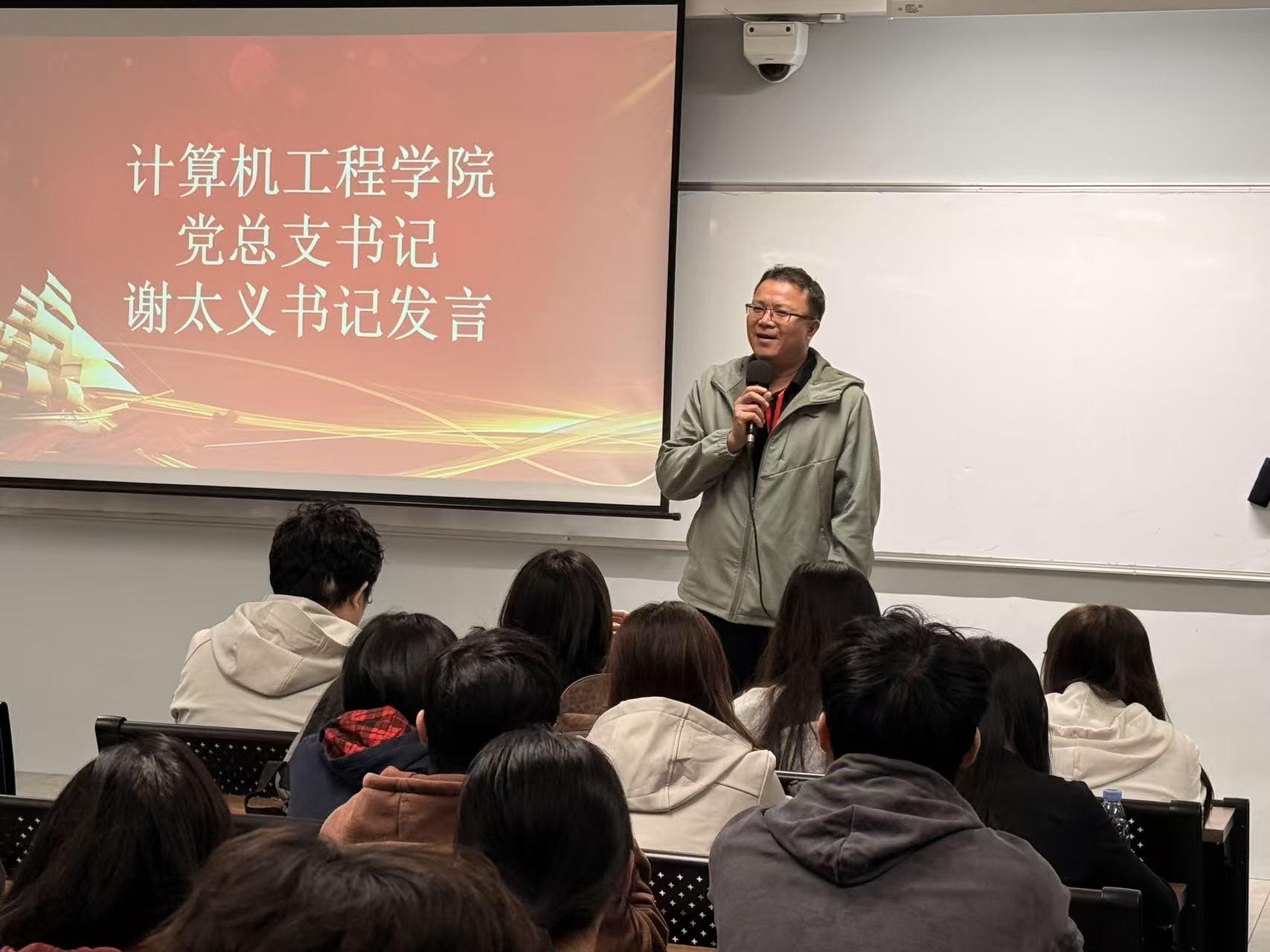 计算机工程学院党总支书记谢太义在致辞中,向在本届校运会上奋勇拼搏、展现风采的全体运动员表示衷心感谢。他充分肯定了大家在赛场上取得的优异成绩,高度赞扬了同学们不畏强手、团结协作、永不言弃的体育精神。