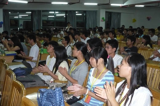 (台下聚精汇神的听、雷鸣般的掌声)