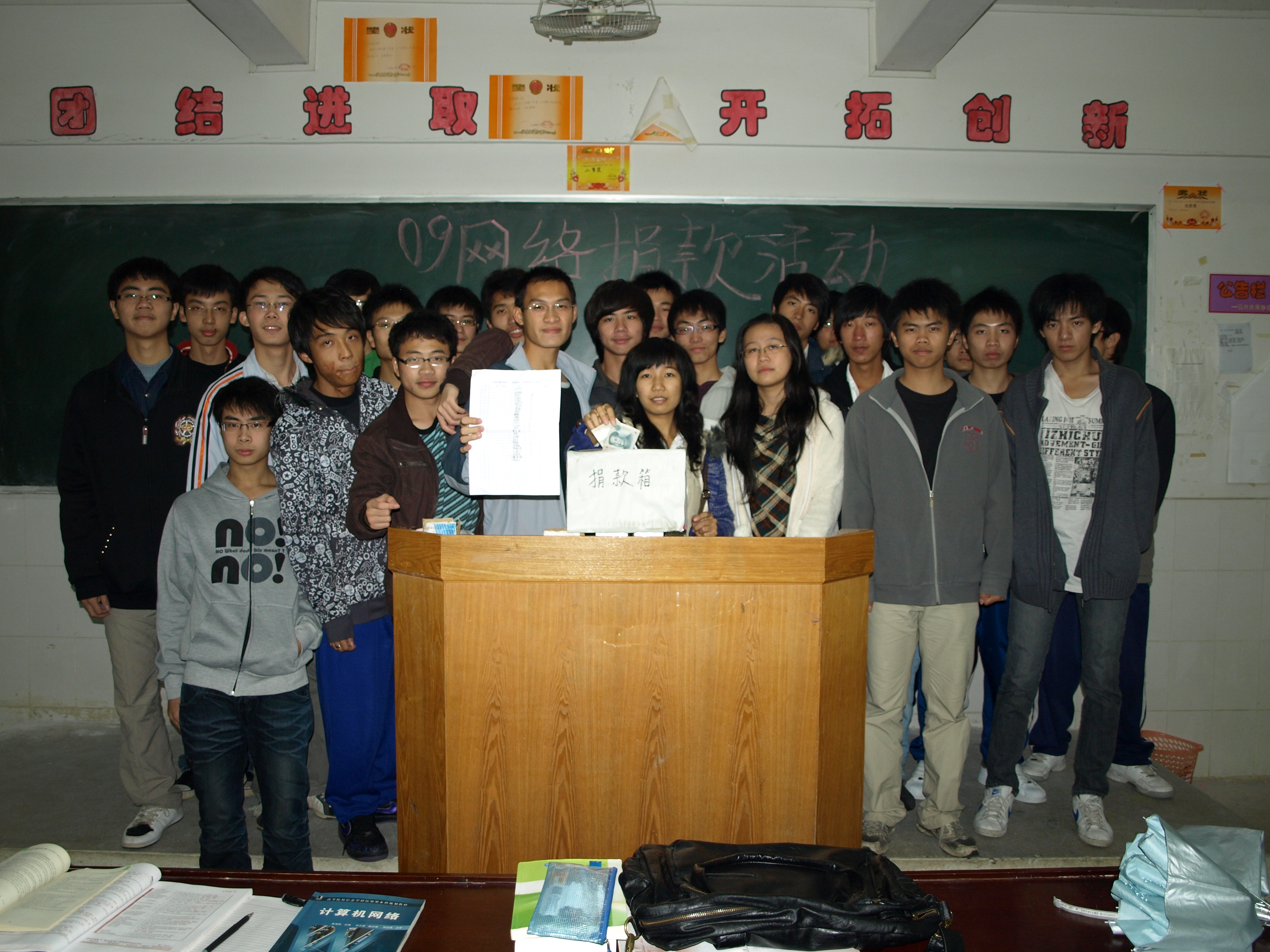 (图为09网络工程班捐款现场)