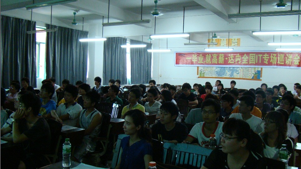 2010年5月17日下午4时,计算机学部的实习基地达内科技有限公司来我校进行企业技术讲座,由达内广州公司总经理马丛和华南区技术总监郭镫鸿主讲,计算机学部、机电学部07级、08级、09级的部分学生参加了此次讲座。