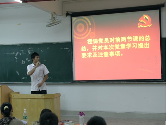 第一个环节是对上两次党章学习进行总结。郑宝清同志向新生重申了前两次党章学习的重点,强调新生要重视党章学习,不能轻视之。然后再次概括地介绍入党程序,以便新生对入党程序有了更宏观,更直接的了解,由此可知,入党程序是新生必须掌握的基本知识。
