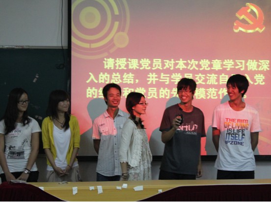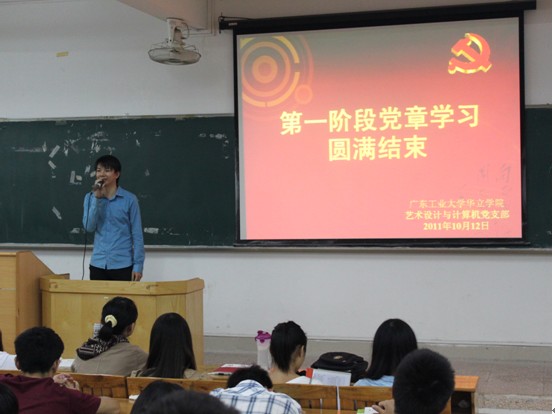 2011年10月12日,艺术设计与计算机学部党支部在顺利进行了第一和第二次党章学习后,为了进一步巩固新生对入党程序等情况的认识,和提高新生的整体思想觉悟,于19:00分在三号楼307和308两间教室进行第三次党章学习。