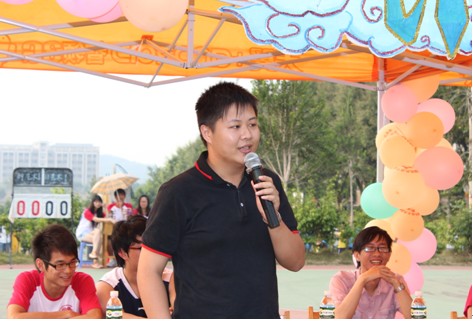 烈日当空,团总支书记王韬致开幕词。一翻激励人心的话语,一句“尊重友谊,服从裁判,团结拼搏”赢得了全场掌声!