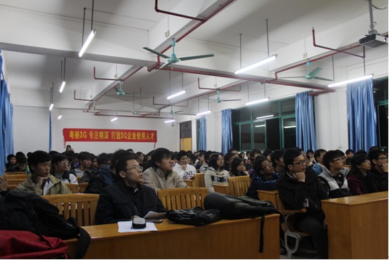 2011年12月12日19:00,在3号楼305课室举办了一场由广东粤嵌科技有限公司主办的“打造3G企业使用人才”的专题讲座,由该公司3G事业部部长黎老师主讲。参与此次讲座的有我学部计算机、网络工程及信息工程专业的同学。