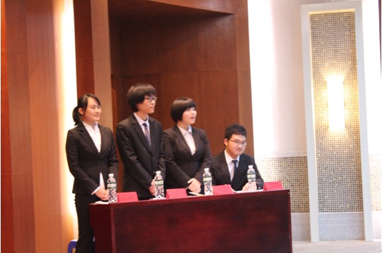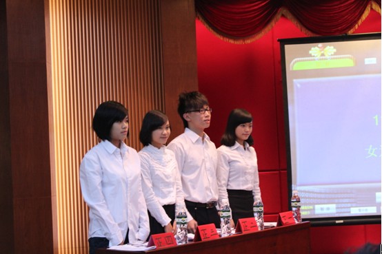 紧接着是主持人宣读辩论赛规则,引出辩题,并介绍双方队员。进入本次学部辩论赛总决赛的是正方11新闻3班和反方11新闻2班。