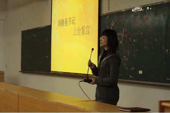 大会内容主要有三项,第一项是由刘晓苑书记作考风考纪动员和学期团学工作总结。刘书记总结了我学部这一学期来的团学工作,肯定了团总支全体成员的成绩,还指出了一今后应该改善的方向。