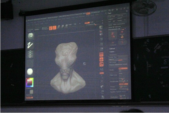 紧接着,朱老师为大家讲解了在三维动画设计里面所必须掌握的要点。朱老师为大家阐述了三维动画基本流程和基本的操作技法,并当场为大家示范了他的几个优秀的作品是如何制作的。通过观看朱老师熟练精心的操作,同学们大开眼界。朱老师专业的操作,丰富的想象确实不是一两天能够达到的。这也给予我们的同学很大的启发。