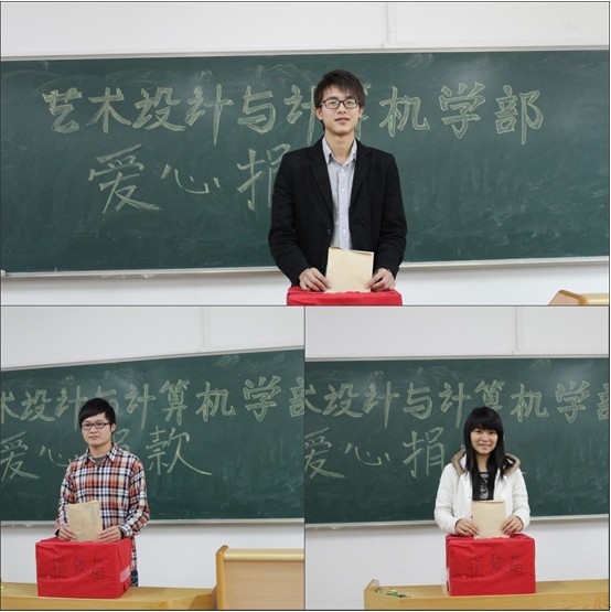 2012年3月8日12:00.艺术设计学部爱心捐款活动在3-301举行,本次活动由学部团总支书记王韬老师主持。