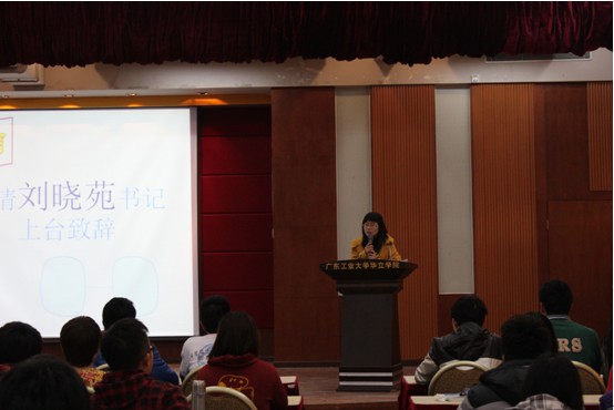 会议首先由党支部书记刘晓苑上台致辞讲话。她简单总结了第一学期我学部团总支的表现,对大家取得的成绩给予了肯定。刘书记对受表彰的同学表示祝贺的同时,还鼓励其余干事继续努力,在接下来的工作中不断提高,争取更大的进步。