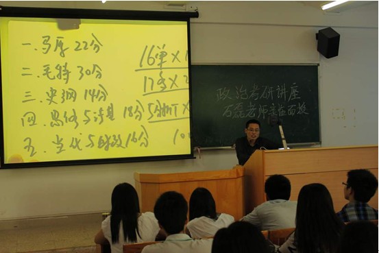 讲座中,石老师通过数据分析,加之以诙谐幽默的语言,结合自己多年对考研政治应试的分析,把实践经验传递给在坐正在备战考研的同学们。在座同学们一边认真听讲,一边做记录,为自己的考研之路明确方向。