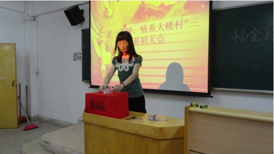 2012年5月7日晚上7点,艺术设计与计算机学生党支部召开了关于以“三爱一奉献,情系大楼村”为主题的三下乡动员暨募捐大会。艺术设计与计算机学生党支部书记刘晓苑和党员参加了会议。