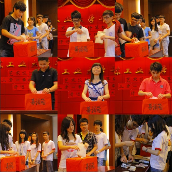 2012年5月8日17:30,艺术设计与计算机学部 “三爱一奉献,共建幸福家园,情进大楼慈善行”三下乡募捐大会在图书馆二号报告厅举行。