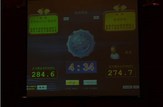 本届辩论赛决赛对阵双方为艺术设计与计算机学部代表队和经济学部代表队。在正式开始比赛之前,两支参赛队伍分别通过视频,生动有趣地进行了自我介绍。之后由主持人介绍了本次比赛的辩题,正方:医患关系紧张在于医生不善待患者。反方:医患关系紧张在于患者不信任医生。