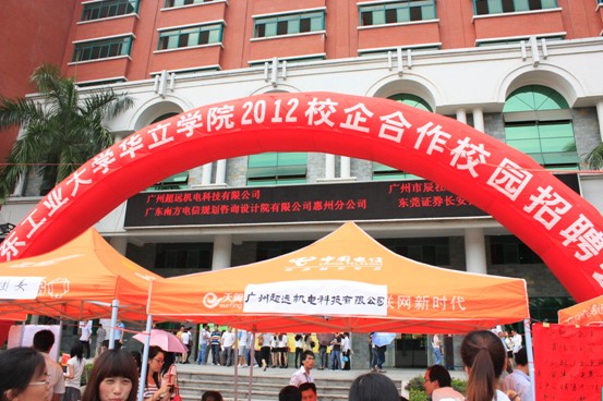 5月24日14:00,广东工业大学华立学院2012年校园招聘会在学院综合楼前广场举行。