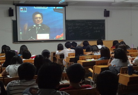 (图为学生观看郑强教授讲话视频)