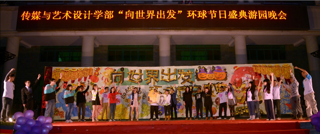 2013年3月14日,由广东工业大学华立学院团委主办,传媒与艺术设计学部承办,以“向世界出发”—环球节日盛典为主题的游园晚会在学院综合楼广场隆重举行。学院党委书记王锦秀、团委书记罗诚以及各学部负责人出席了本次晚会。